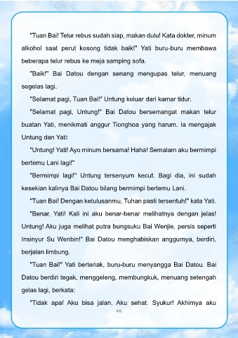 "Selamat pagi, Tuan Bai!" Untung keluar dari kamar tidur.