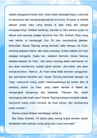 sengaja mengalah. Suatu hari, sebelum bermain, Kaisar Taizong