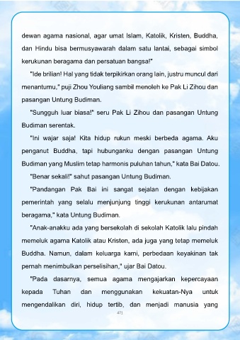 kerukunan beragama dan persatuan bangsa!"