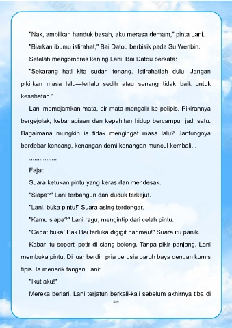 "Nak, ambilkan handuk basah, aku merasa demam," pinta Lani.
