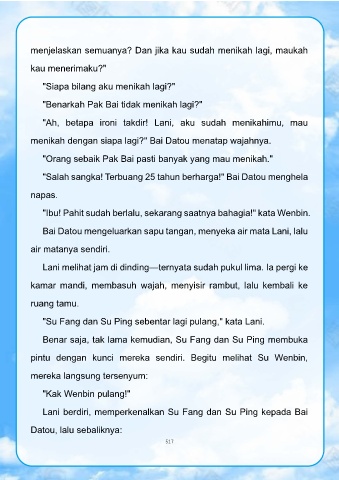 Bai Datou mengeluarkan sapu tangan, menyeka air mata Lani, lalu