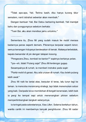 "Iya—eh, tidak! Pulang saja!" Zhou Mi terdengar gugup.