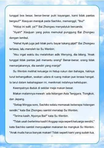 "Terima kasih, Nyonya Bai!" kata Su Wenbin.