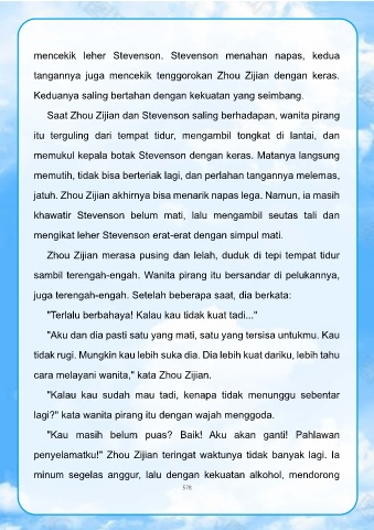 mencekik leher Stevenson. Stevenson menahan napas, kedua
