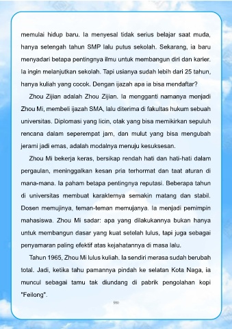 memulai hidup baru. Ia menyesal tidak serius belajar saat muda,