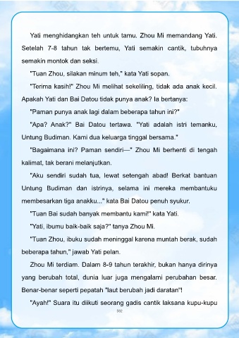 "Tuan Zhou, silakan minum teh," kata Yati sopan.
