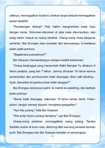 "Kita antar ibumu pulang bersama," ujar Bai Zhongwu.