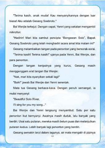 "Terima kasih! Terima kasih!" ujanya pada Yenni, Bai Wenjie, dan