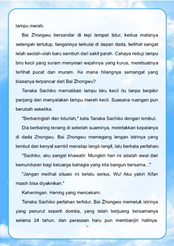 Tanaka Sachiko perlahan tertidur. Bai Zhongwu memeluk istrinya