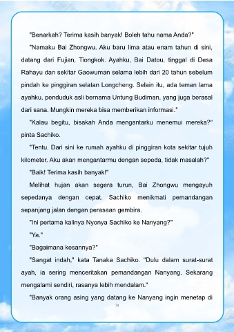"Namaku Bai Zhongwu. Aku baru lima atau enam tahun di sini,