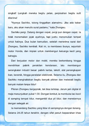 Ia memandang Sachiko yang tidur di sampingnya dengan tenang.