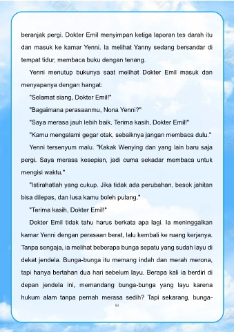 Yenni menutup bukunya saat melihat Dokter Emil masuk dan