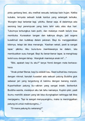 ‘Mungkin bayi terlantar lagi,’ pikirku. Benar saja, di dalamnya ada