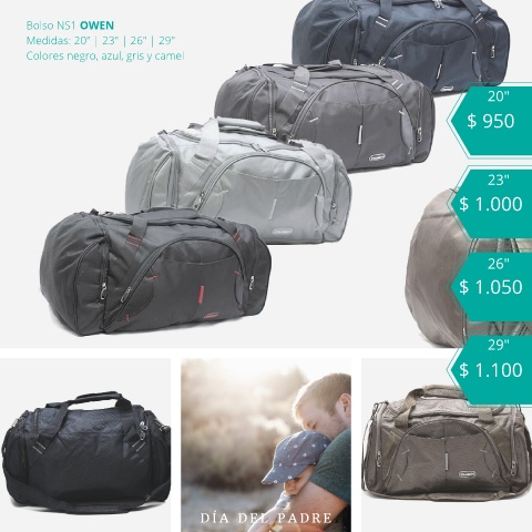 Bolso NS1 OWEN Medidas: 20" | 23" | 26" | 29" Colores negro, azul, gris y camel 20" $ 950 23" $ 1.000 26" $ 1.050 29" $ 1.100 D Í A D E L P A D R E