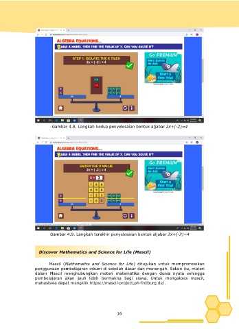 Gambar 4.9. Langkah terakhir penyelesaian bentuk aljabar 2x+(-2)=4