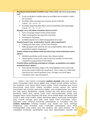 Contoh 1 dan Contoh 2 merupakan analisis masalah pada siswa kelas VII