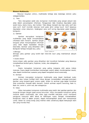 Menurut Vaughan (2011), multimedia terbagi atas beberapa elemen yaitu