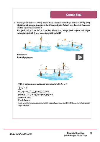2. Seorang anak bermassa 100 kg berada diatas jembatan papan kayu bermassa 100 kg yang