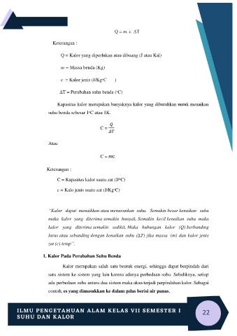 Kapasitas kalor merupakan banyaknya kalor yang dibutuhkan untuk menaikan