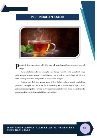 pada ruangan bersuhu normal. Lama-kelamaan, suhu pada secangkir kopi teh ini akan