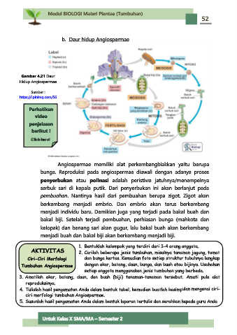 Tumbuhan Angiospermae dengan akar, batang, daun, bunga, dan buah atau bijinya. Usahakan