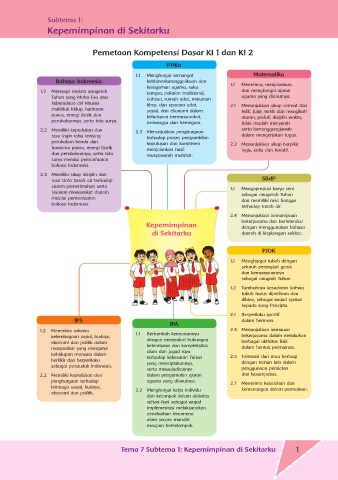 Pemetaan Kompetensi Dasar KI 1 dan KI 2