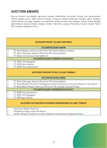 lelang selama tahun 2020. Auction Award terbagi ke dalam beberapa kategori yakni kategori