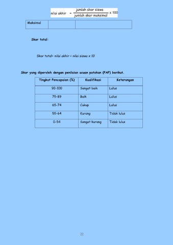 Skor yang diperoleh dengan penilaian acuan patokan (PAP) berikut.