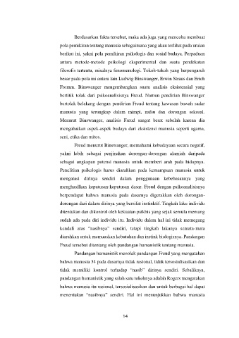 Pandangan humanistik menolak pandangan Freud yang mengatakan