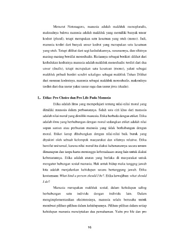 Menurut Notonagoro, manusia adalah makhluk monopluralis,