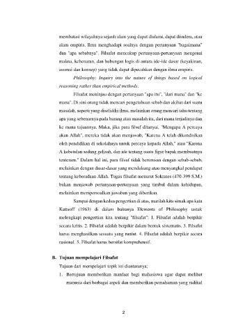 secara kritis. 2. Filsafat adalah berpikir dalam bentuk sistematis. 3. Filsafat