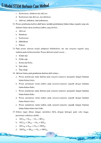 32. Proses pembuatan karbon aktif harus melalui pembakaran bahan bahan organik yang ada