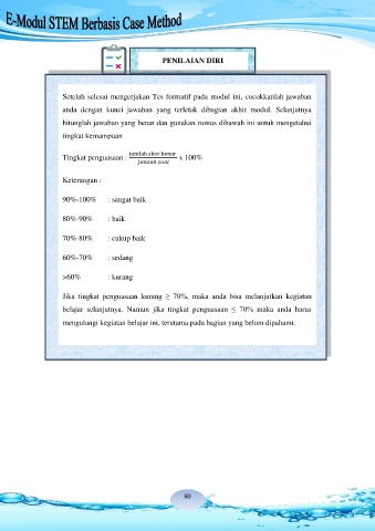 belajar selanjutnya. Namun jika tingkat penguasaan ≤ 70% maka anda harus