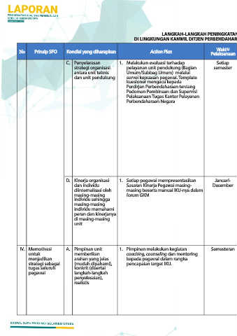 No Prinsip SFO Kondisi yang diharapkan Action Plan Waktu Dilampirkan sebagai Implementasi Kegiatan Progress Pelaksanaan Action Plan