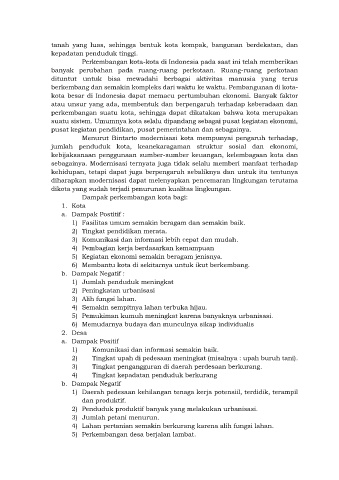 Dampak perkembangan kota bagi: