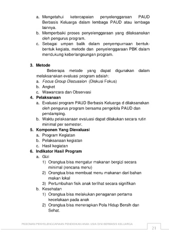 a. Evaluasi program PAUD Berbasis Keluarga d dilaksanakan