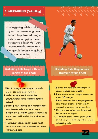 kaki bagian dalam ke arah depan 4. Dorong atau giring bola dengan kaki