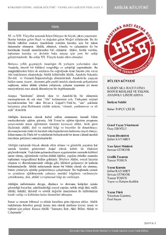 bulunmuşlardır. Ahilik anlayışında insan bir bütün olarak ele alınmış, Yayın Kurulu