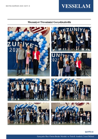 VESSELAM MAYIS-HAZİRAN 2025/ SAYI: 9 Mezuniyet Törenimizi Gerçekleştirdik SAYFA 9 Karşıyaka Hacı Fatma Bodur Mesleki ve Teknik Anadolu Lisesi Bülteni