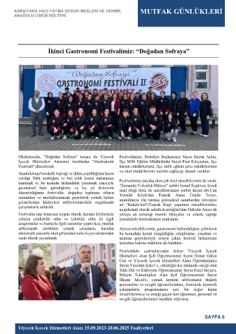 Yiyecek İçecek Hizmetleri Alanı 15.09.2023-20.06.2025 Faaliyetleri