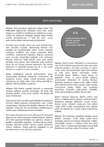 12 MART 2024 / VESSELAM GAZETESİ ÖZEL SAYI / 2 AKİF’İ ANLAMAK