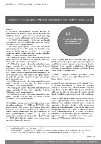 18 MART 2025 / VESSELAM GAZETESİ ÖZEL SAYI / 4 ÇANAKKALE MEKTUPLARI