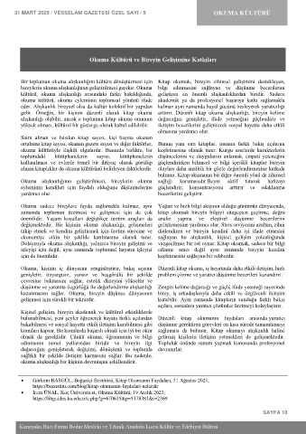 31 MART 2025 / VESSELAM GAZETESİ ÖZEL SAYI / 5 OKUMA KÜLTÜRÜ