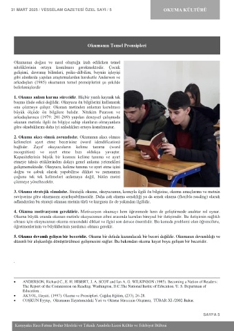 31 MART 2025 / VESSELAM GAZETESİ ÖZEL SAYI / 5 OKUMA KÜLTÜRÜ