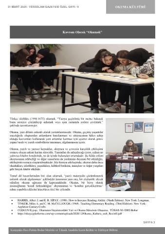 31 MART 2025 / VESSELAM GAZETESİ ÖZEL SAYI / 5 OKUMA KÜLTÜRÜ