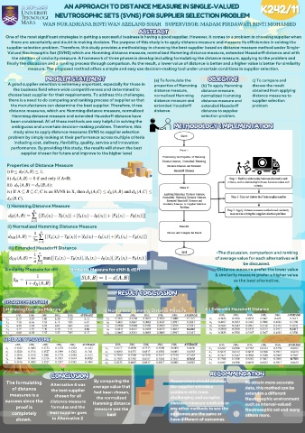 supplier selection problem. Therefore, this study provides a methodology in choosing the best supplier based on distance measure method under Single-