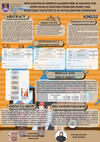 route distance, but Greedy Initialization consistently produced impact for Open Vehicle Routing Problem (OVRP). solutions for complex problems like OVRP, its performance is highly