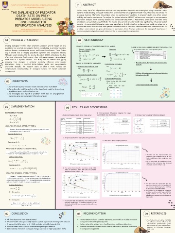 PREDATOR MODEL USING stability and species coexistence. To analyze the system behavior, XPPAUT software was employed to one-parameter