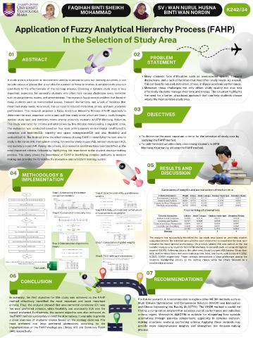 Step 3: Determination of geometric Step 7: Computation of global weights indicates the most optimal performance. As a result, Library (A1) was ranked as the top