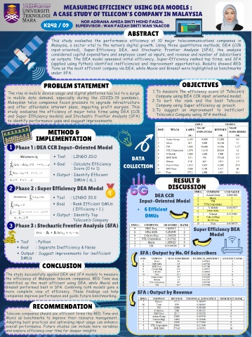 and Super-Efficiency models) and Stochastic Frontier Analysis (SFA) Telecom’s Company using SFA method.